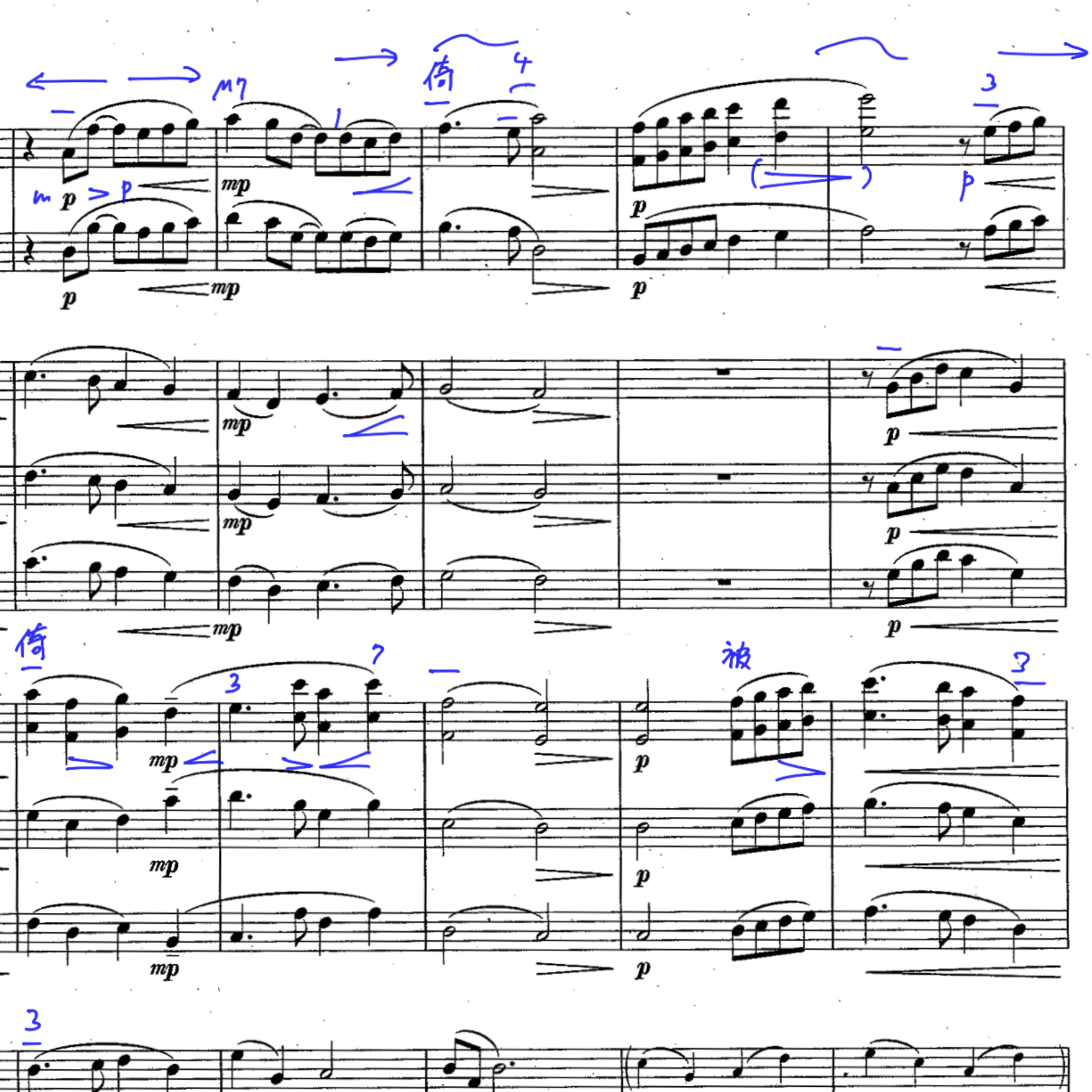 私に興味を持ってくださる方の多くが「少しの工夫でこんなにも音や音楽が変わる」というところに面白みを感じていらっしゃるのではないかと思います。では、何がそれを可能にするのか?一言でいえば「楽曲分析と演奏解釈」です。これらをどのように実現させるのか?それは当然、専門的な知識と長年の経験が必要になります。でも!そこに私の存在価値があると感じているのですが、その専門知識をいかに誰にでもわかりやすく伝えるか。これが私の仕事であると思うのです。ですから、スコアへの書き込みを動画スクリーンショットとして解説を含めながら、和声の仕組み、フレーズの山の設定、音程の取り方、各セクションのバランスのコツ、合奏時に陥りやすい点などについて触れ、総合的な演奏のポイントを動画として提供しています。関心をお持ちの方はサンプルをお送りしますので、お気軽にご連絡ください。